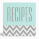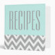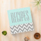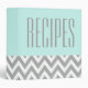 A gray and white chevron pattern decorates this modern style mint green recipe binder. Use this empty binder to organize your favorite recipes. The design is from original art.