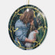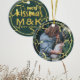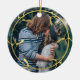 Modern Mistletoe Wreath Couple's Photo Monogram Ceramic Ornament