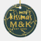 Your first's christmas ornament as a couple? I think so! You can easily upload your image. your initials and a special date to the reverse. I've chosen a deep forest green to contrast the gold "Merry Kissmas" but you can easily change to suit your Christmas Tree colorway.
