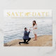 Announce your wedding date with this modern and elegant gold foil save the date postcard. It features classic typography with a whimsical script. This mix-typography photo save the date announcement is perfect for any wedding theme. Personalize by adding photos, names, date, time and other wedding details.