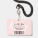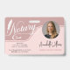 Modern, elegant Notary badge. Design features typography script ''Notary'' with elegant feather pen , your photo, details on pink and rose gold background on the front. Personalize further with additional information & details on the back. Perfect for Notary Public, Mobile Notary, Loan Signing agents etc.