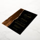 The left-hand edge of this elegant modern wedding invitation features a mocha brown watercolor agate border trimmed with faux gold glitter. The customizable text combines handwriting, copperplate and italic fonts in real gold foil on a black background. The reverse side features a matching brown and gold agate design.