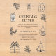 Featuring hand-drawn festive illustrations of ornaments, pine sprigs, gifts, and cozy Christmas icons, this clear acrylic invitation feels both warm and refined. Its minimalist monochrome palette gives it a timeless appeal — perfect for stylish hosts who prefer understated holiday sophistication.