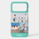 Modern Monogram 3 Photo Collage Aqua Teal iPhone Case