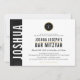 MODERN MONOGRAM BAR MITZVAH side bar black gold Invitation