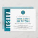 MODERN MONOGRAM BAR MITZVAH side bar teal blue Invitation