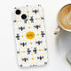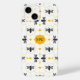 Modern Monogram Bee Pattern Yellow Honeycomb Chic Case-Mate iPhone 14 Case features a bees and honeycomb with simple shapes and black outlines on a white background. Yellow accents add a touch of color to the symmetrical, minimalistic design. The ink drawing of bees incorporates geometric elements and Art Deco inspiration without shading. Fully customizable