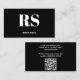A modern monogram black business card with space for your name, initials, social media handle, website, mailing address and phone number.