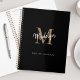 Modern Monogram Black Gold Elegant Script Name Planner