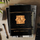 A classy elegant business or personal 2026 black planner featuring gold copper metallic geometric monogrammed square label on a black leather look background. ++++++++ Perfect for a stylish business image for a business corporate manager, director, fashion stylist, home interior decorator, designer, architect, beauty salon manager, makeup artist, hairstylist. +++++ Easy to personalize with your monogram initial, name, and text!