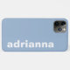 This phone case is modern and trendy! It's classic combination of cerulean blue and white is crisp and clean. The font is chunky and bold. It is super easy to make your own - just select Personalize this template and type in your name. It's that easy!
