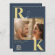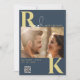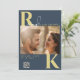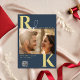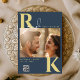 Modern Monogram Bright Bold Navy Blue Photo Invitation