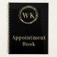 This is a modern and elegant, two initials, monogram, business appointment book design. This stylish design, is in elegant black with gold colored typography / text and gold effect circle. At the bottom in matching gold typography are the words "Appointment Book". Add your initials by typing them into the personalize this text box. You can also change the words, "Appointment Book" to your own text, if you want to. To customize further, check out the design editing tool, where you have the option of changing the color or font, or switching off the gold circles. For help with personalization, matching products, or for a custom design, contact me via zazzle chat or email: ursuladawnmoon@gmail.com