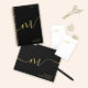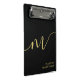 Modern Monogram Calligraphy Black Gold Name Mini Clipboard. Easy to customize elegant script typography monogram. Perfect monogrammed name gift idea!