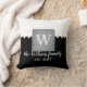 modern monogram custom pillow black and white stripes distressed style with dark brown text to personalize for unique home decor.
