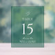 Modern Monogram Emerald Green Wedding Table Number Acrylic Sign