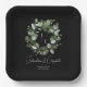 Modern Monogram Eucalyptus Wreath Wedding Black Paper Plates