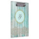 Modern Monogram Gold Pattern Blue Vintage Wood Clipboard