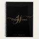Elegant Script Gold Monogram Script Initials white Name on black. A Simple elegant minimalist style planner for home or office. 2025 planner. Customize for any year. Trendy minimalist style.