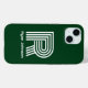 This modern monogram green iphone 15 case is trendy yet and classic. It features your first or last initial in a bold trendy font and your name in a coordinating classic font in white. It's simple and minimal.