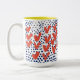 Modern Monogram Hearts and Blue Dots Patterned Two-Tone Coffee Mug