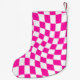 Retro psychedelic modern checked pastel pink and white checks Christmas stocking, with personalized monogram