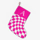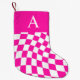 Modern Monogram Hot Pink Checkered Small Christmas Stocking