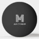 Ping pong ball featuring your monogram initial in white with your surname below. Font colors can be customized in the design tool.