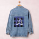 A custom denim jacket with a decorative square panel on the back. The design on the panel is blue and black buffalo plaid check, with your chosen initial as a white capital letter forming a monogram. This cool and trendy jacket has retro elements yet is modern and stylish. Click 'Personalize' to enter the initial you would like on the design, and preview the result.