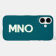 Modern minimalist monogram initial design which can be changed to personalize. White on a teal green background with a light apple green drop shadow.