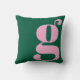 Modern Monogram Initial Letter Preppy Pink Green Throw Pillow