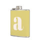 This flask features a bold oversized lowercase initial in cream on a warm butter yellow background — fun, graphic, and a great personalized gift. A solid pick for a bachelorette party, birthday, or bridesmaid gift.