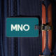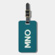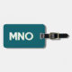 Modern minimalist monogram initial design which can be changed to personalize, along with the details on the reverse. White on a teal green background with a light apple green drop shadow.