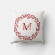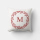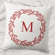 Modern Monogram Initial Red Leaf and Berry Wreath Throw Pillow