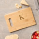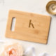 Elegant rustic wood monogram name initial modern custom cutting board. An inspired unique keepsake gift for a kitchen lover relative or friend on a birthday, housewarming, Thanksgiving, Christmas, retirement, or any other occasion.