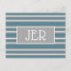 This modern template design features a turquoise background with stylish stripes in gray and white, the backside is white with a gray divider. Customize with a two or three initial monogram. The composition is simple, elegant and stylish. We hope you'll love it! We think it's a winner!