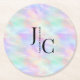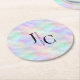 Modern Monogram Logo Iridescent Opal Stylish Round Paper Coaster