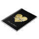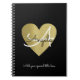 Black (custom-color) background with a cool and stylish monogram printed in a script font-style...a nice notebook for her with the image of a faux gold heart, to personalize with name, initial and special subject