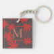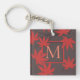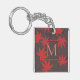 Stylish red and grey monogrammed keychain with elegant maple leaf art.