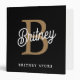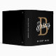 Modern Monogram Name Black Gold Script Office 3 Ring Binder