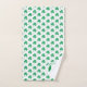 Modern SHAMROCK Bath Towel set, designed with an all-over shamrock pattern. The Irish Flag is set within a circle in the corner of each towel. There is CUSTOMIZABLE curved text at the top and bottom of the circle, plus a MONOGRAM which is also customizable. This text can be replaced with a welcome message and/or personalized with your name, or name of your establishment. Ideal for your guests or patrons on St Patrick's Day.