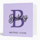 Modern Monogram Name Purple Black Script Office 3 Ring Binder
