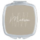 Elevate your everyday essentials with this Modern Minimalist Monogram Beige compact mirror. Featuring a sleek beige background, this elegant mirror is personalized with bold initials and a name in a contemporary script font, making it a perfect blend of style and function. Whether it's a gift or a treat for yourself, this mirror adds a touch of sophistication to any routine. Ideal for those who appreciate clean lines and timeless design.