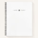 Modern minimalist notebook with name and monogram in a stylish black font. Bright white background covers both front and back. Your choice of style, inside paper design and spiral color. Perfect for meeting notes, lists, journaling and more. Fully customizable. Designed by Kimberly Brett.