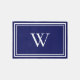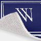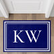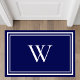 Chic modern navy blue area rug featuring your monogram initial in elegant white typography and white borders. You can change the colors of the rug, monogram initial and borders to match your decor by editing in the design tool.