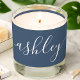 Modern Monogram Navy Blue White Elegant Script Name Scented Candle