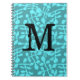Modern Monogram on Stylized Aqua Leaves Notebook