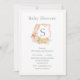 Modern Monogram Peach Crest Bunny Baby Invitation