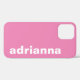 This phone case is modern and trendy! It's classic combination of pink and white is crisp and clean. The font is chunky and bold. It is super easy to make your own - just select Personalize this template and type in your name. It's that easy!