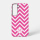 Modern Monogram Pink Chevron Stripes Samsung Galaxy S22 Case.